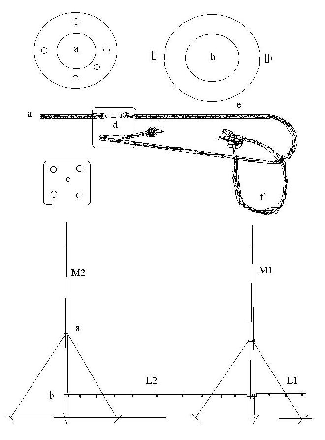 De afstand tussen de twee masten wordt bepaald door de lengte van de afgestemde voedingslijn in dit geval 975 cm.