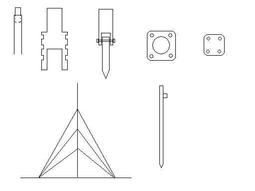 De onderste 4 mastdelen hebben een diameter van 45 mm deze zijn met elkaar verbonden met 3 koppelpijpjes van 30 cm lang met een diameter van 40 mm, deze zijn voor de helft in het mastdeel geschoven en vastgeschroefd met zelftappende schroeven.
